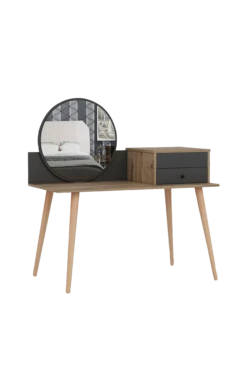 100% SPÅNSKIVA MED MELAMINBELÄGGNING Tjocklek: 1,8 cm Bredd: 120 cm Höjd: 96 cm Djup: 60 cm Tangentbordsfack under skrivbordet 2 lådor Flera hyllplan Kan fästas i väggen