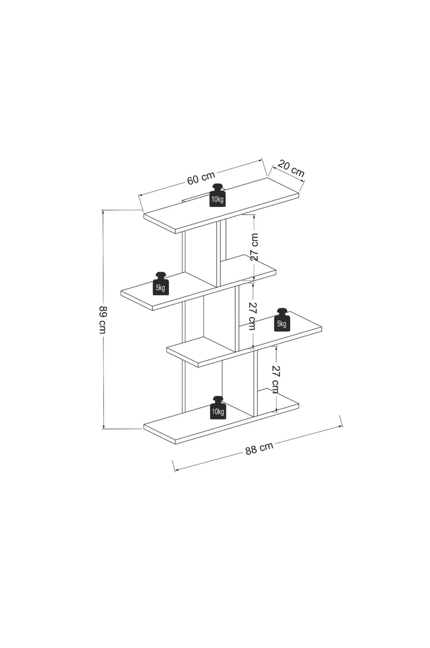 100% SPÅNSKIVA MED MELAMINBELÄGGNING Tjocklek: 1,8 cm Bredd: 88 cm Höjd: 89 cm Djup: 20 cm Hyllans höjd: 27 cm Flera hyllplan Kan fästas i väggen