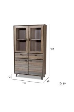 Möbler Homeroom Floor Glass Cabinet Malaga, Brown, 110x40x187