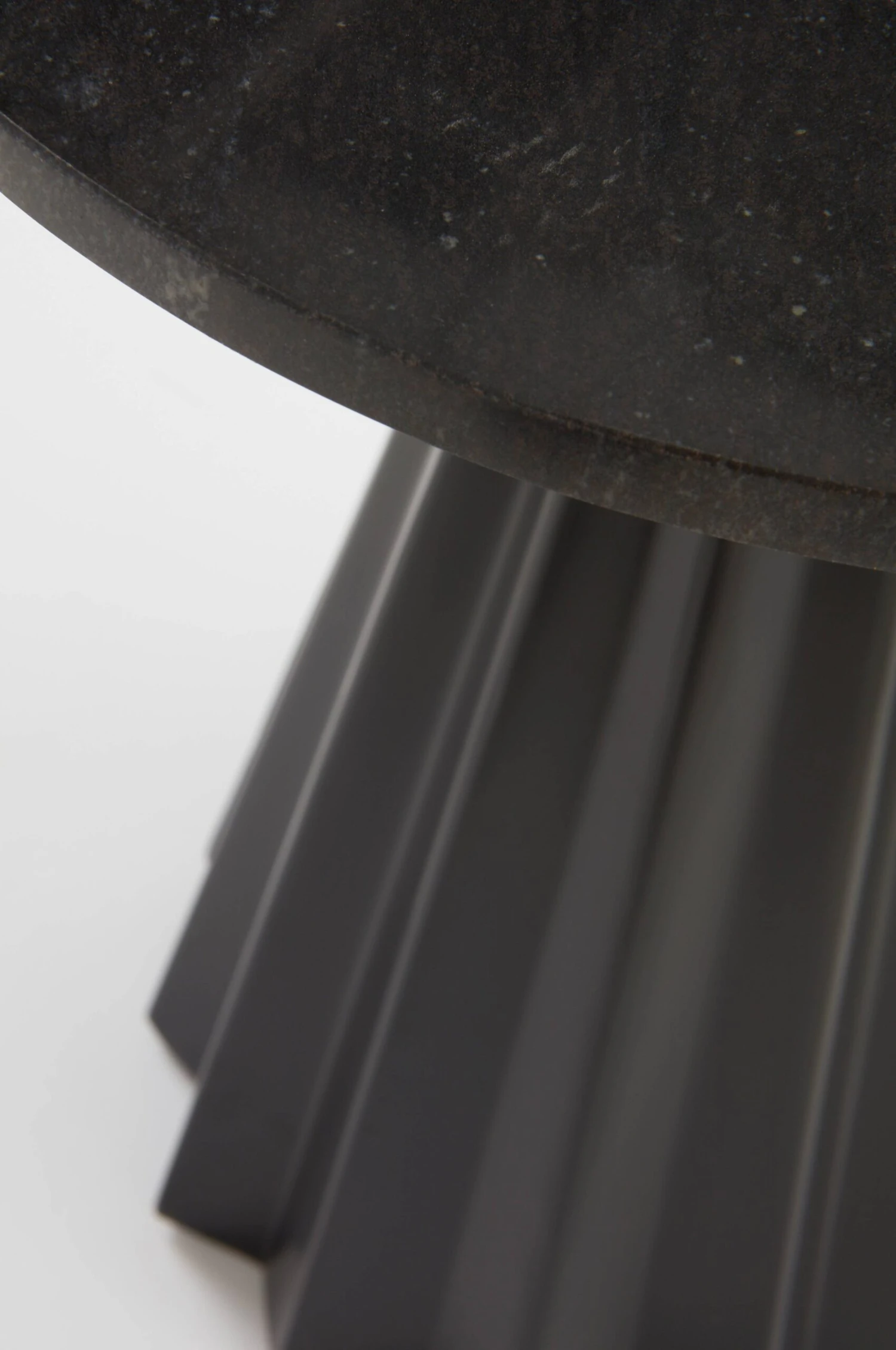 LEIRA har en rund fin, bordsskiva av granit och den konformade, räfflade foten är av järn med slät ytfinish. Bordsskivan av granit, som är en naturlig stenart, har melerad färg och fina variationer. Det svarta underredet är ihåligt och har tack vare det låg vikt. Viss montering krävs. Monteringsanvisning medföljer.