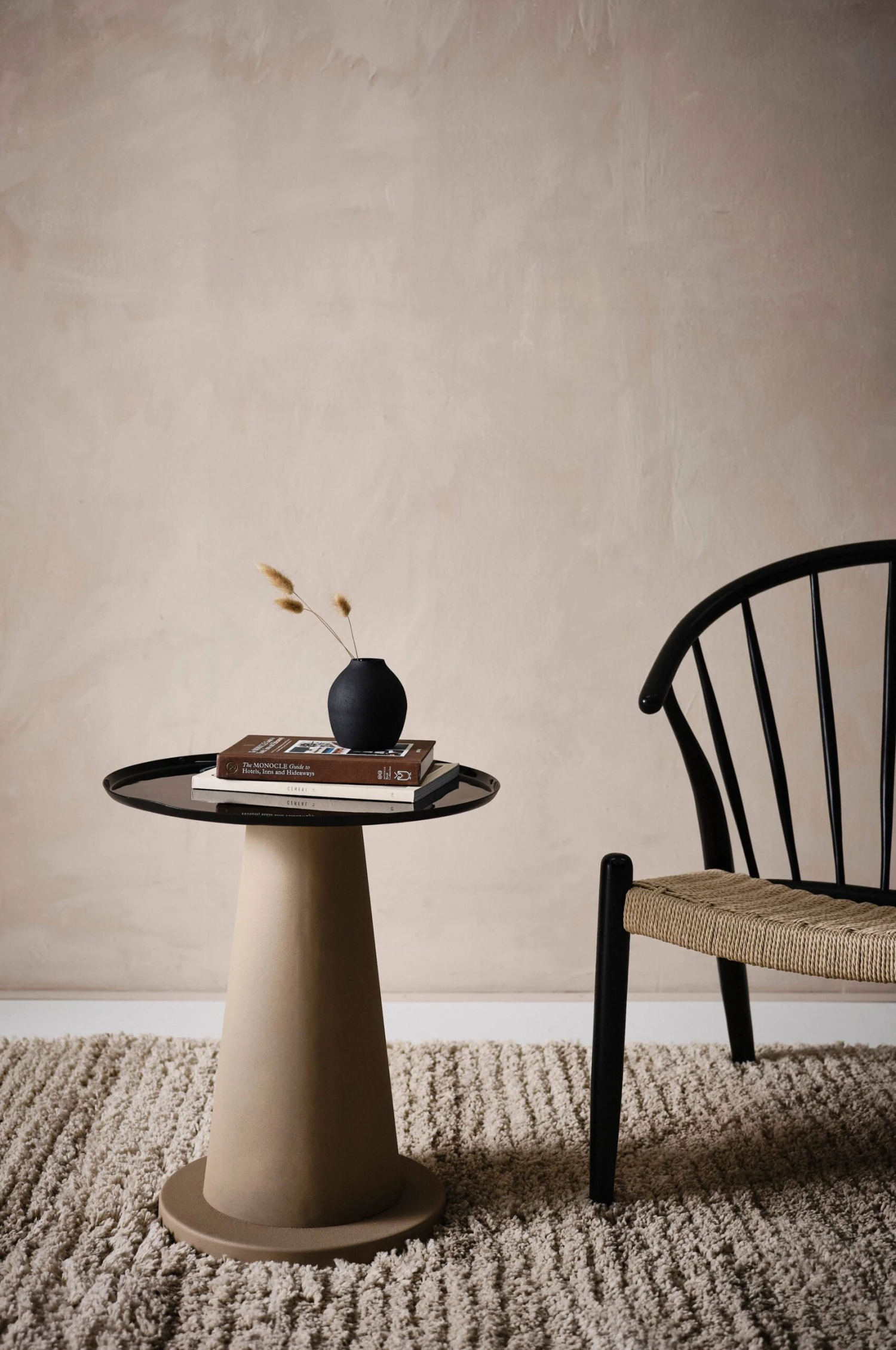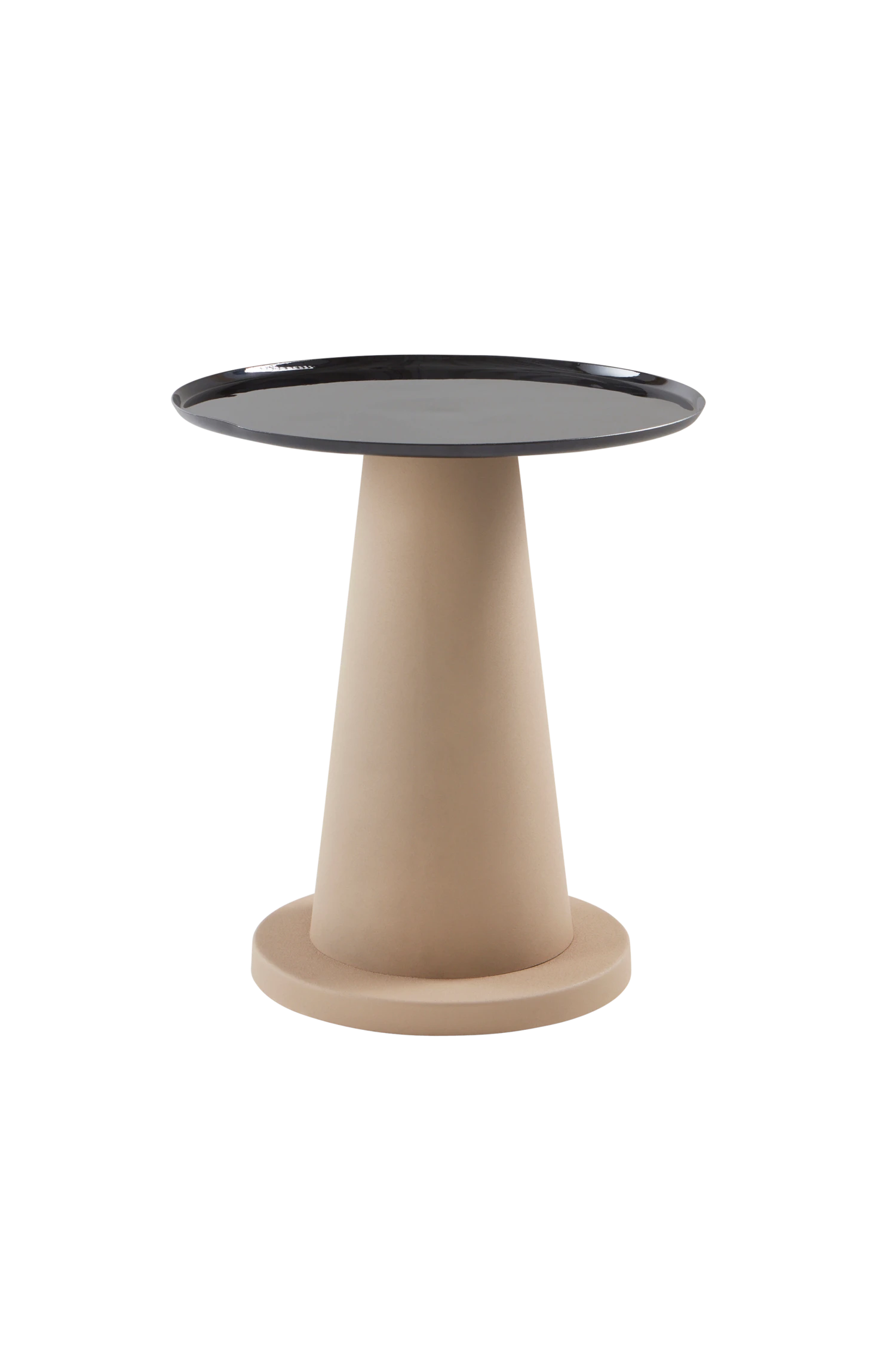 Sidobord av metall med svartlackad bordsskiva. MONTEVERDE är ett unikt sidobord med en spännande form som blir en snygg detalj i ditt hem.