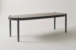 Matbordet är av almträ och bordsskivan har fått almfaner på toppen. Matbordet är ovalt i formen och benen som placerats i ytterkant och samtidigt infällda i bordsskivan ger bordet sin fina karaktär. Placeringen av benen gör det enkelt att sitta många vid bordet. Bordet finns med flera olika, vac…