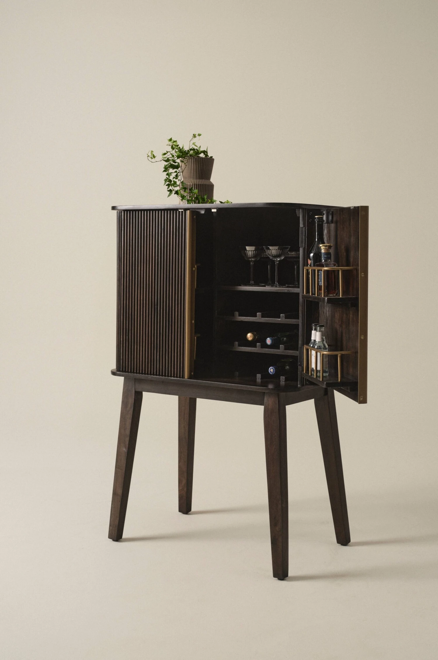 Barskåpet har skön retrokänsla i allt estetik till design. Den räfflade profilen ger skåpet en lyxig tou…