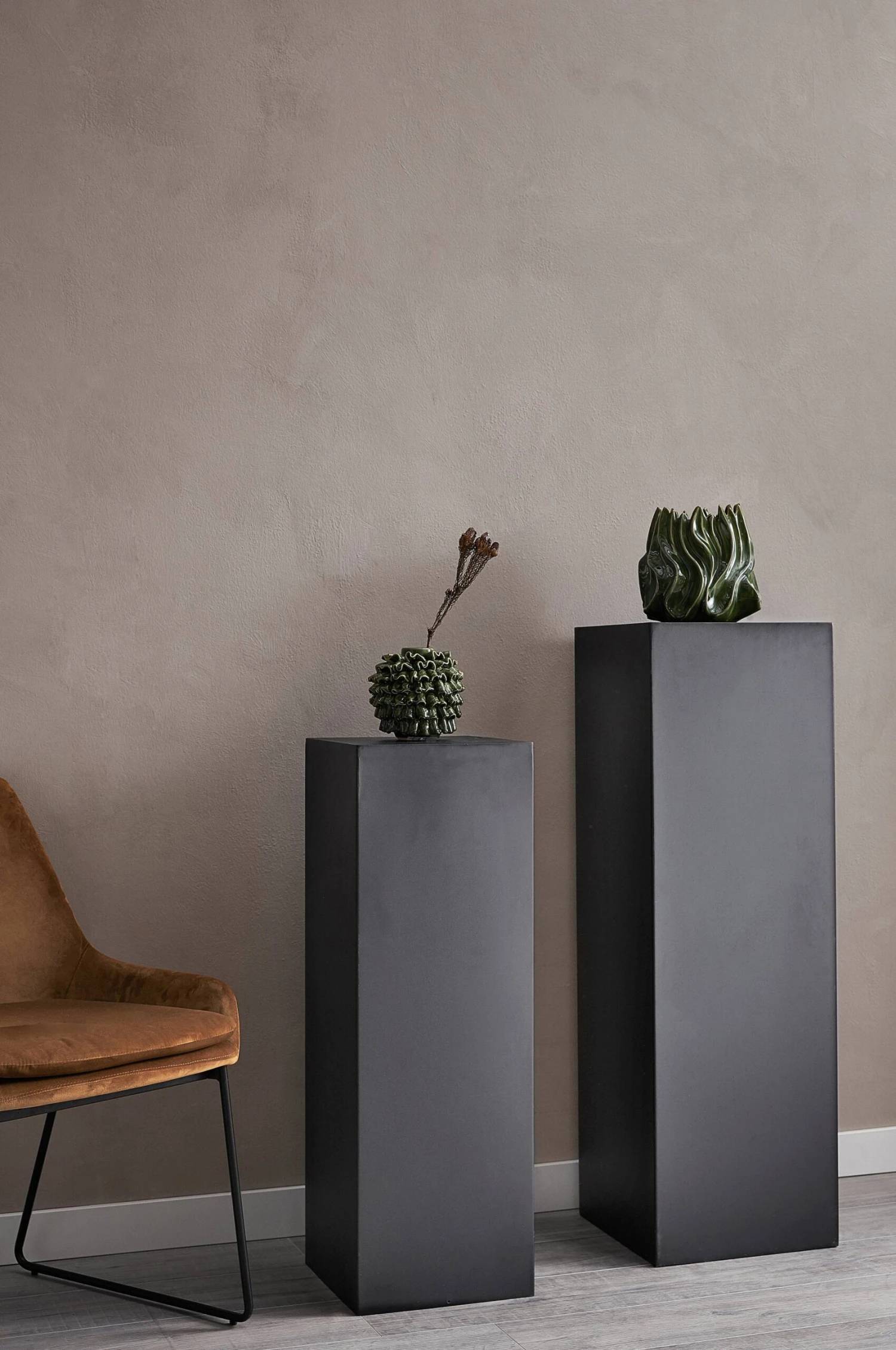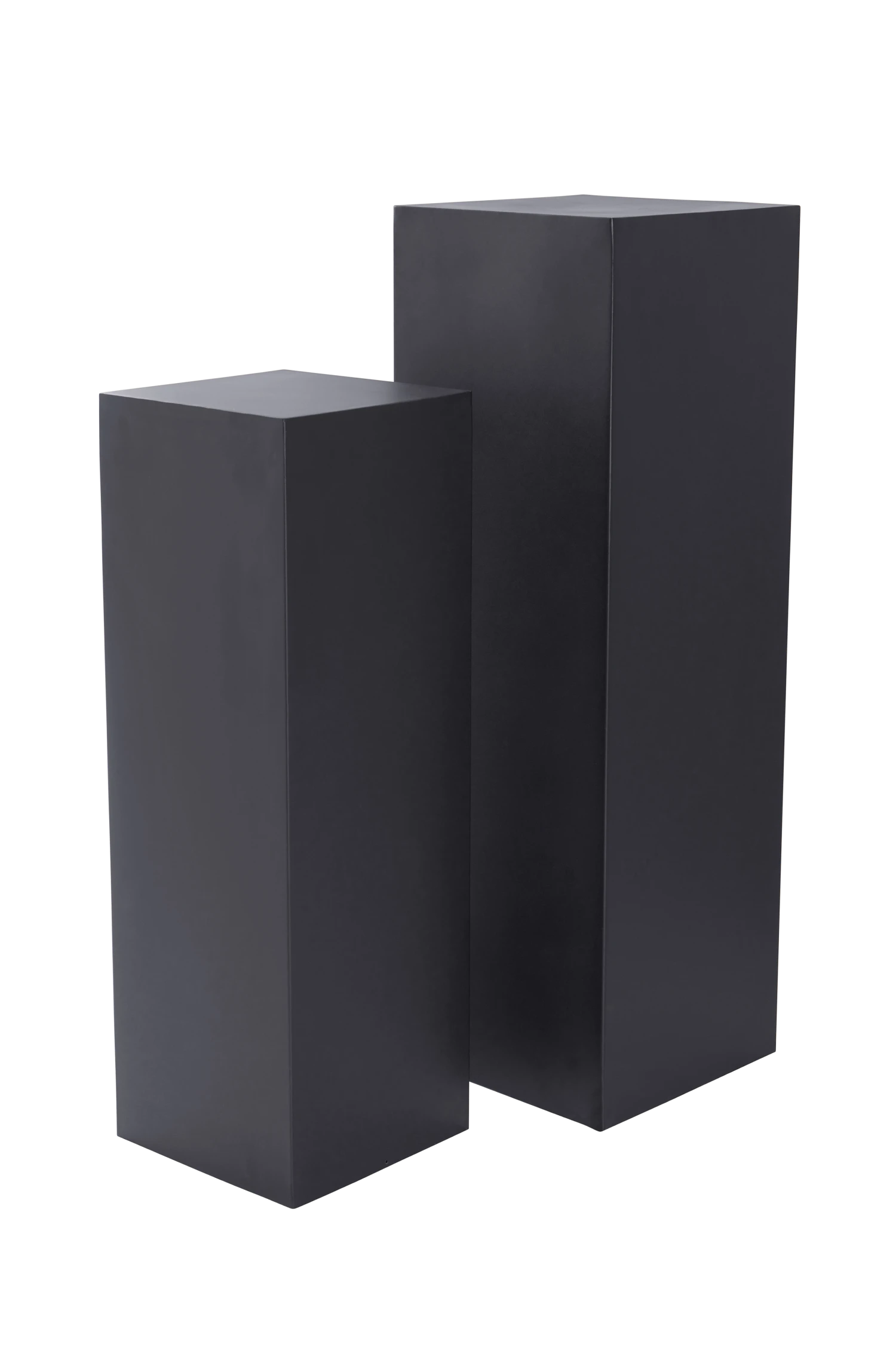 2-pack piedestaler av pulverlackerad metall. Stilrena, enkla och lättplacerade piedestaler som är ihåliga. Den raka formen gör att de passar in i många hem och rum, oavsett stil. Piedestalen gör återtåg efter att ha varit bortglömd ett tag och den är ett utmärkt sätt att lyfta fram fina föremål och gröna växter. Placera en vacker bordlampa på piedestalen och lys upp ett mörkt hörn.