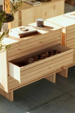 De tunna benen som ser ut som brädor ger byrån en svävande känsla när man ser den rakt frami och en boxig,…