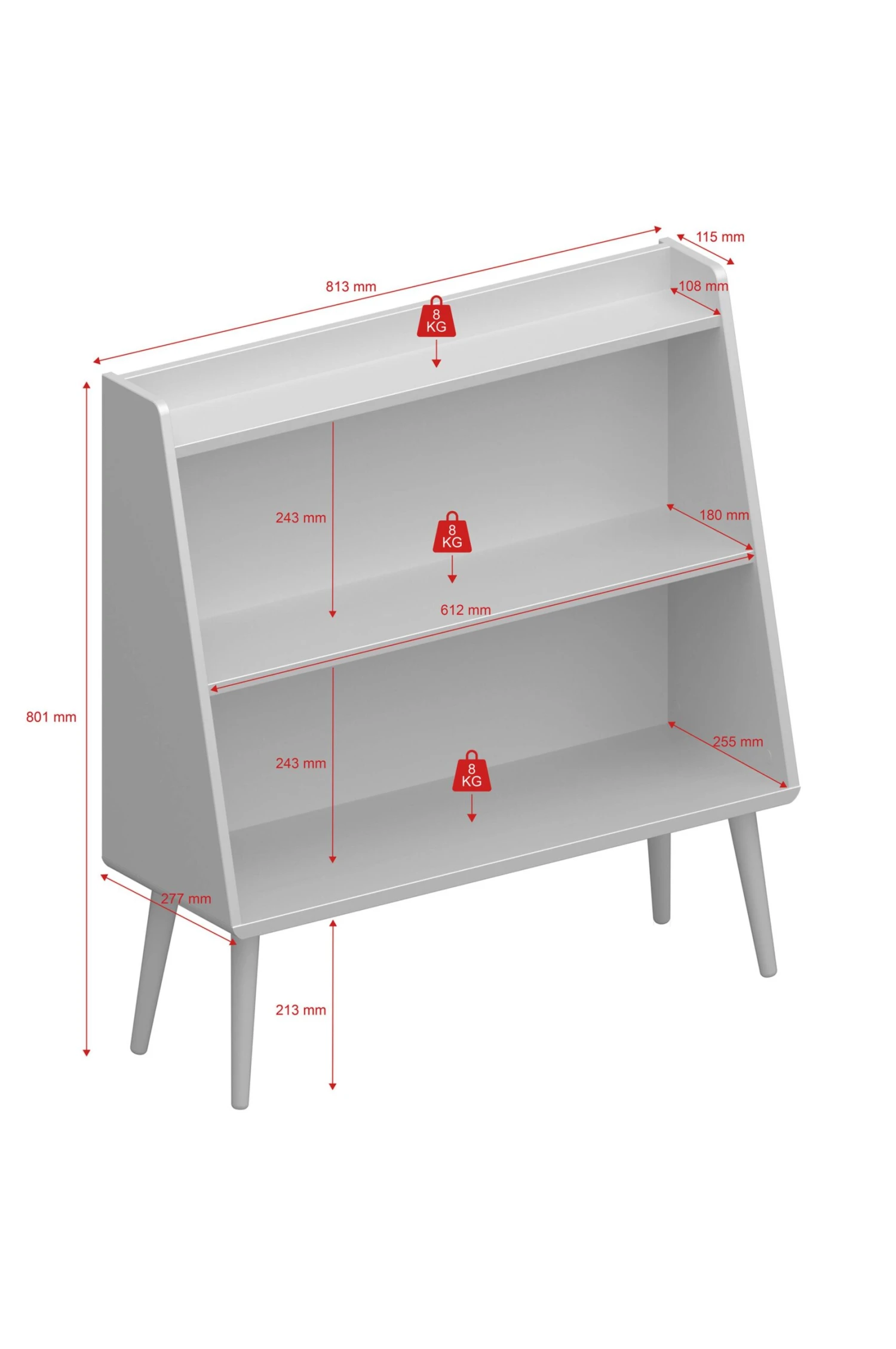 Hylla med 3 hyllor. Tillverkad i MDF med lackerad yta och ben i massiv obehandlad ek. Enkel självmontering.