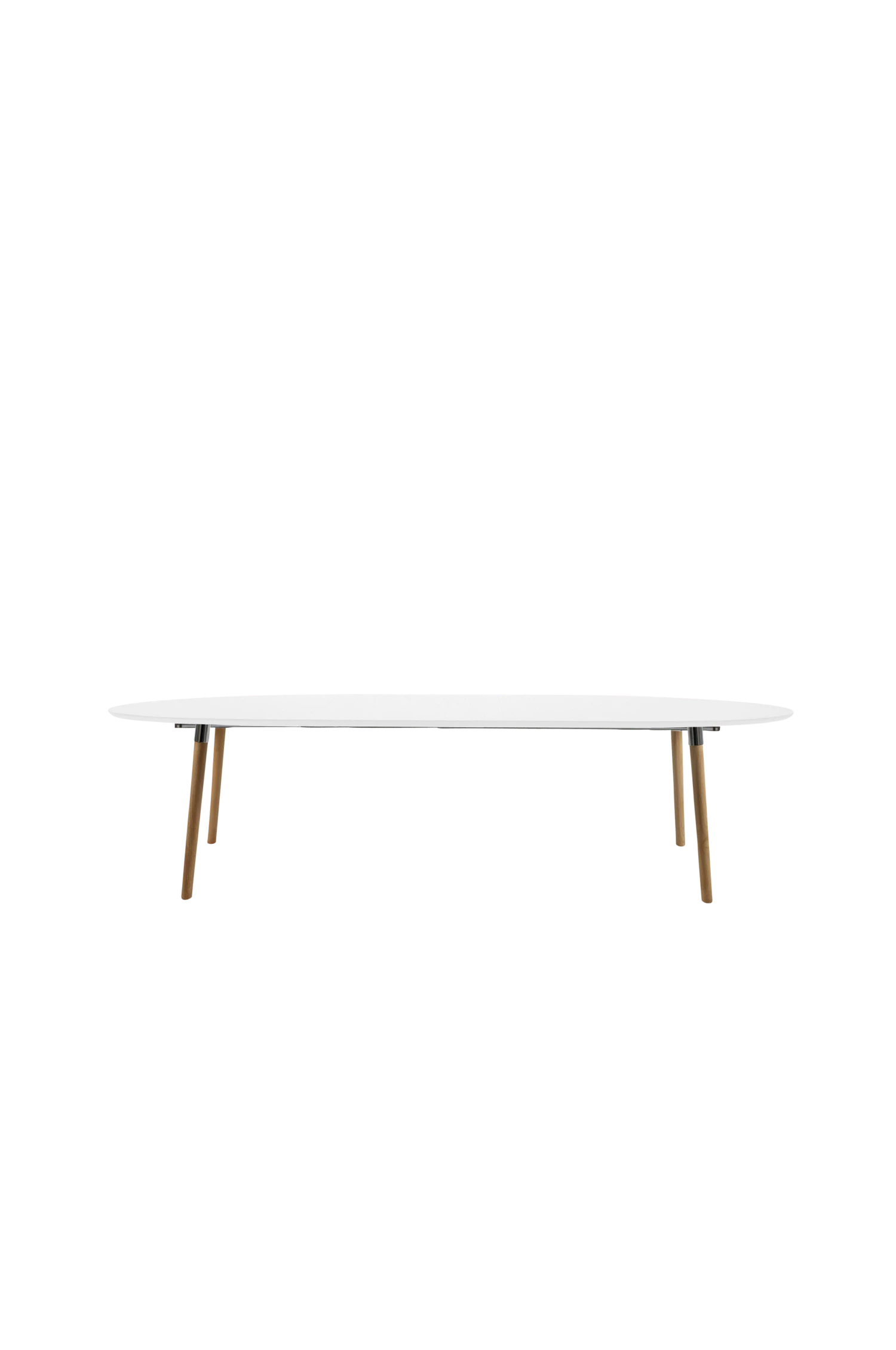 Matbord av gummiträ med kromade detaljer på benen. Iläggsskiva ingår. 100×170/270, höjd 74 cm. Avstånd mellan benen på bordets långsida är 216,3 cm +/- 1,5 cm. Lev. omonterat.