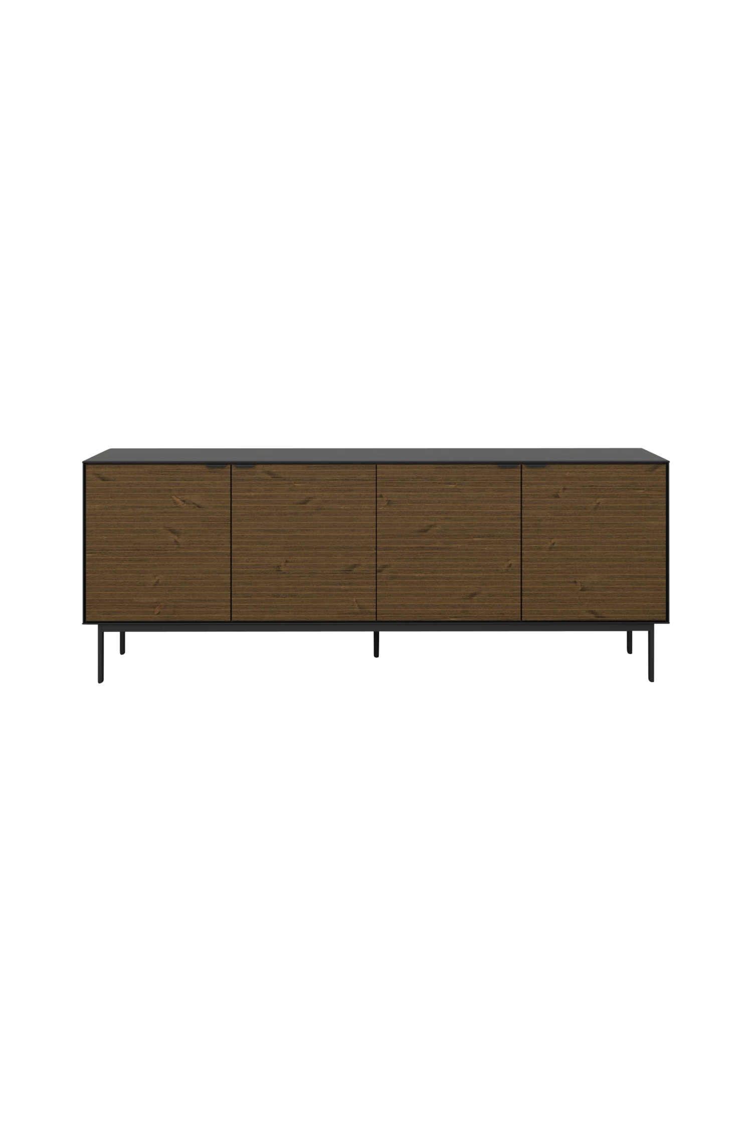 Skänk med 4 dörrar på metallben. Interna 4 justerbara hyllor. Massiva träfronter i fin borstad yta + lackerad MDF. Tillverkad i Danmark och FSC-certifierad. Enkel självmontering.