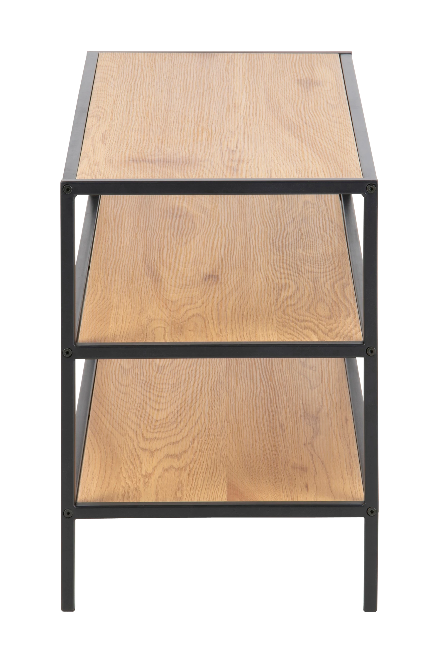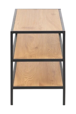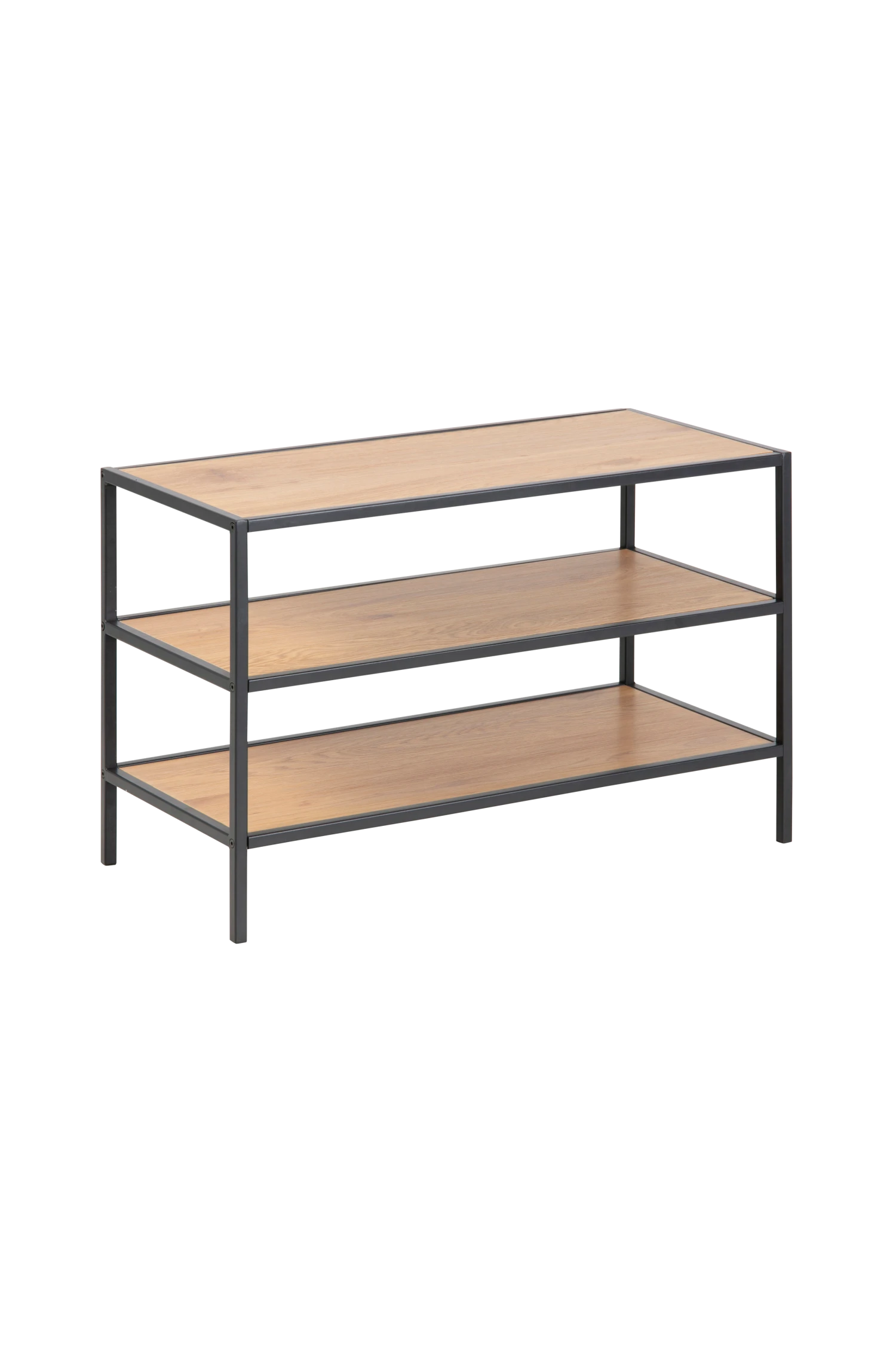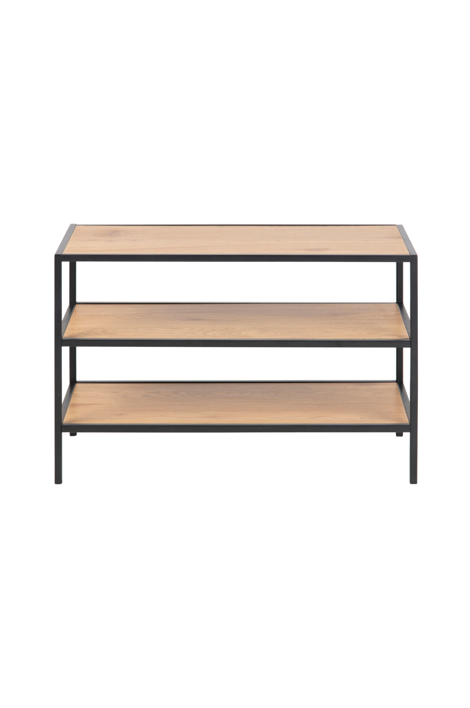 Skohylla som stöds av en metallbas med ett pulverbelagt utseende. Noggranna utvalda material som är lätta att underhålla. Det finns ett kompletterande sortimentet som bokhyllor, skrivbord, konsol och bord. Med detta härliga träet passar dessa möbler in i de flesta stilarna