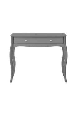 Skrivbord med formade ben och en funktionell låda för förvaring producerad i en kombination av MDF och massiv tall med en fin lackerad yta. Enkel självmontering.