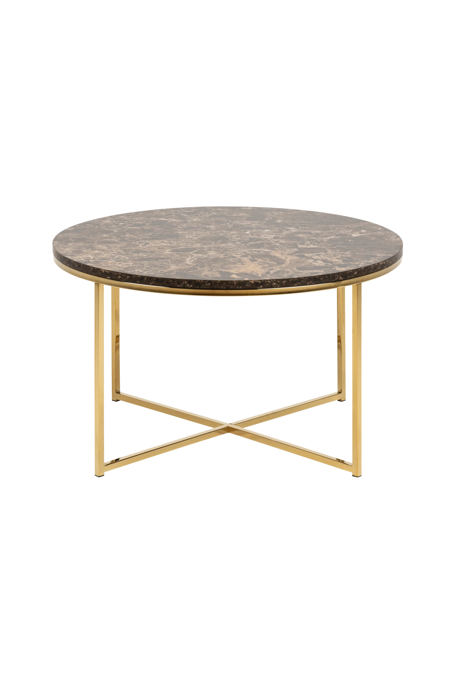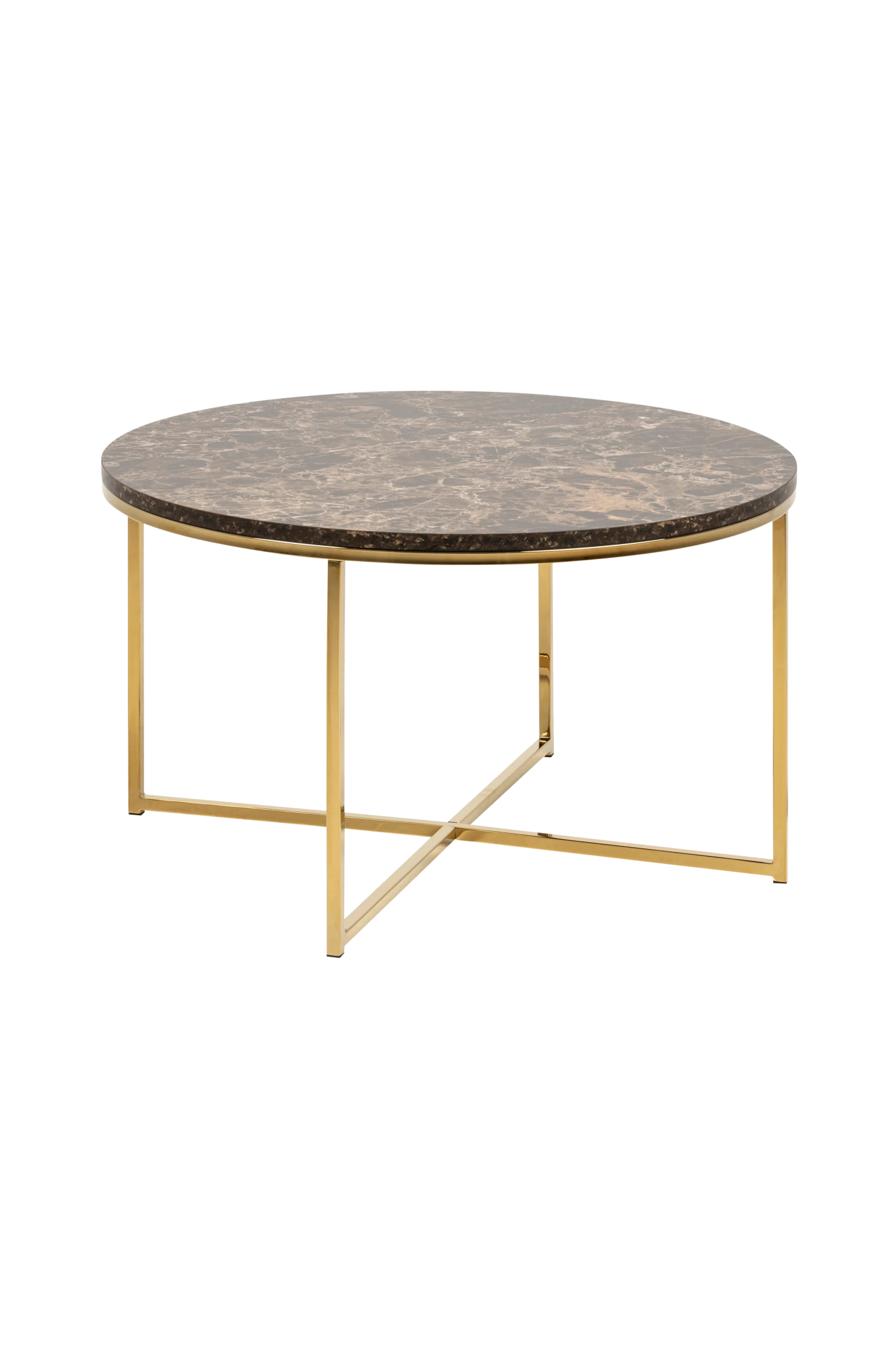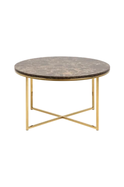 Alisma Soffbord av MDF med faner av marmorlook och metallstomme. Mått diameter 80, höjd 46 cm. Montera själv.