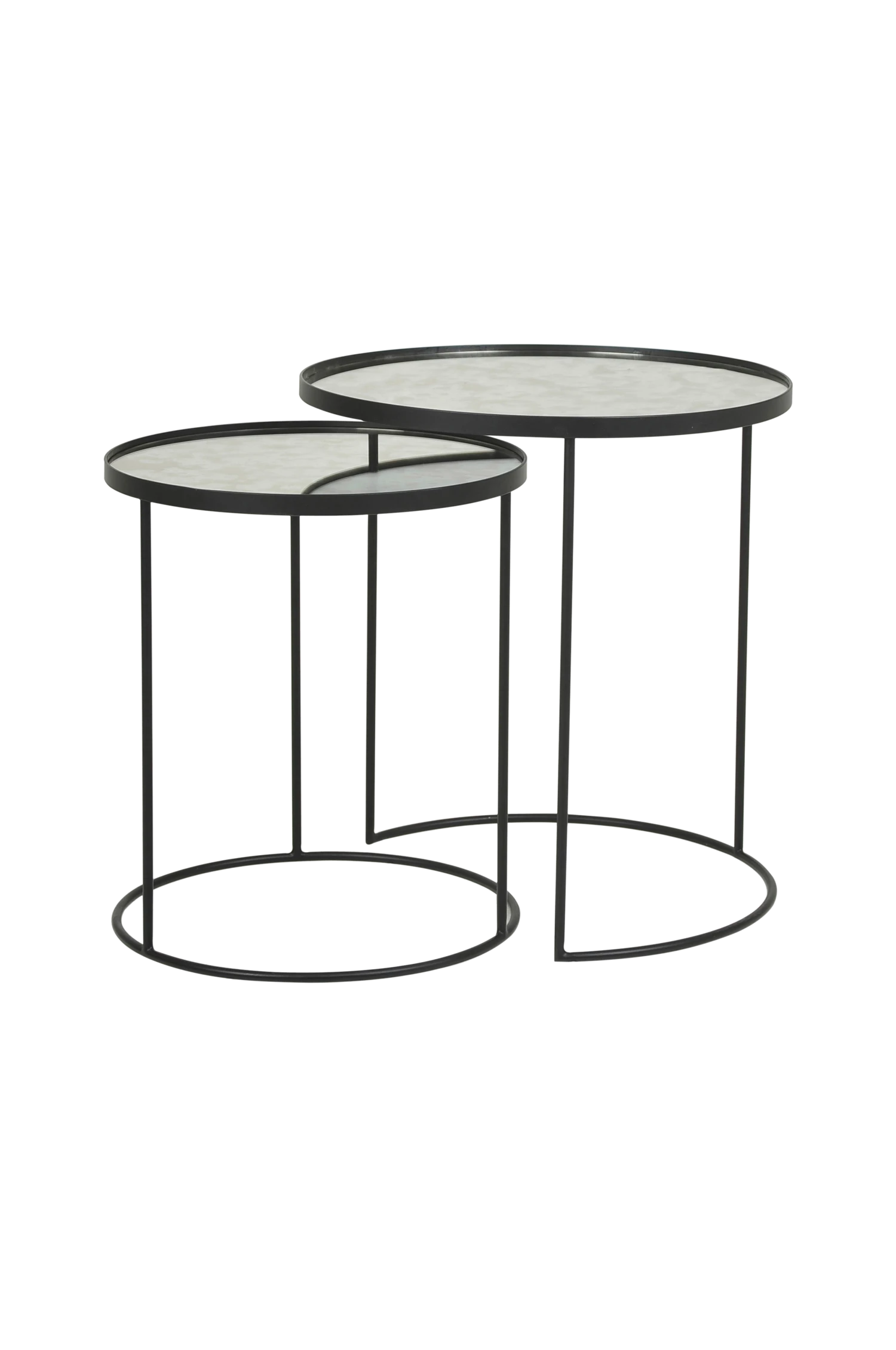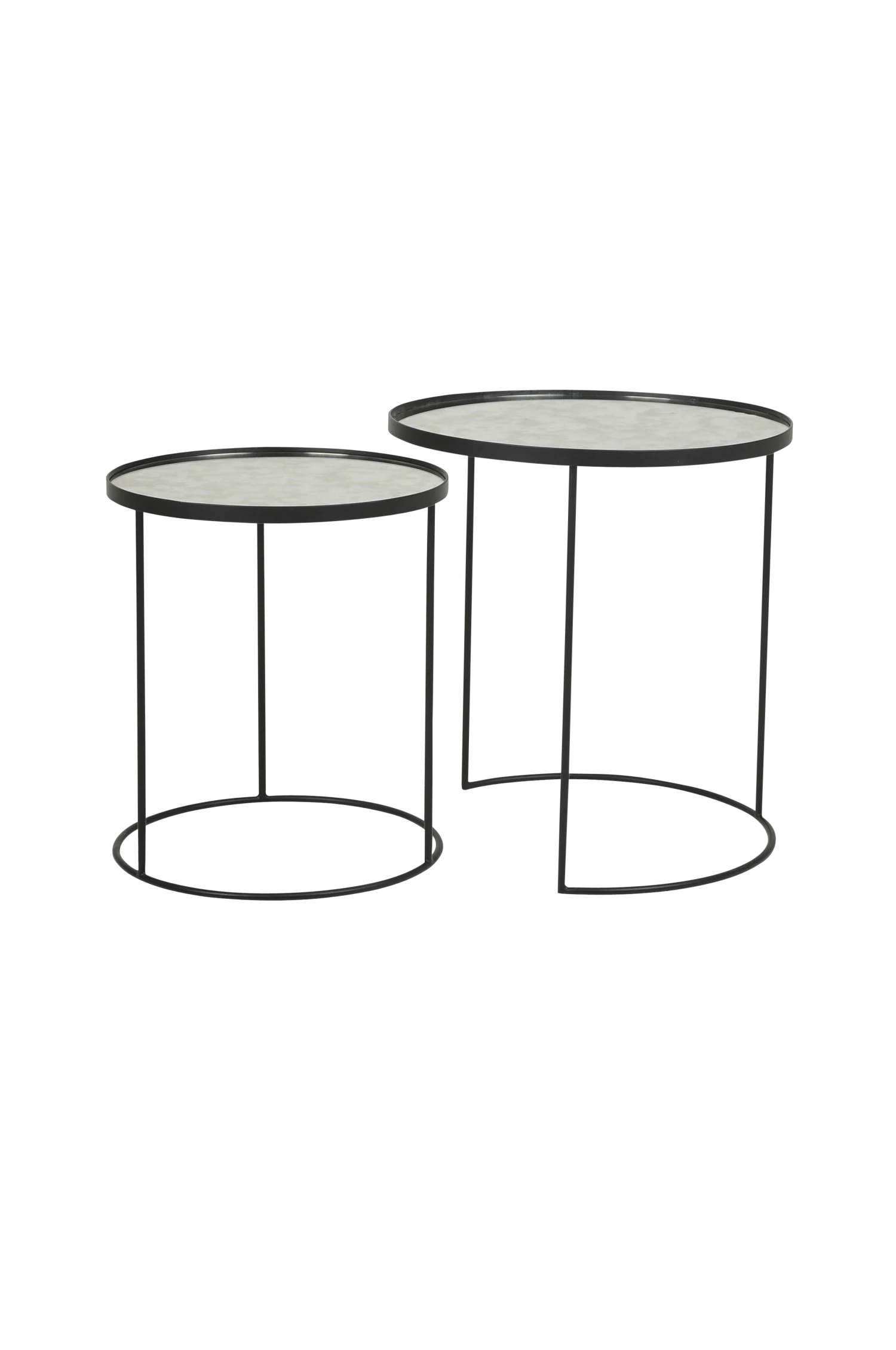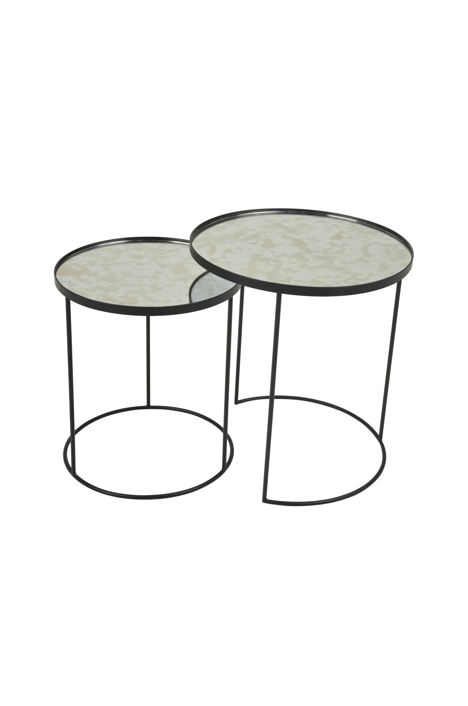 Satsbord i metall (2 st) med en antik spegeltopp.