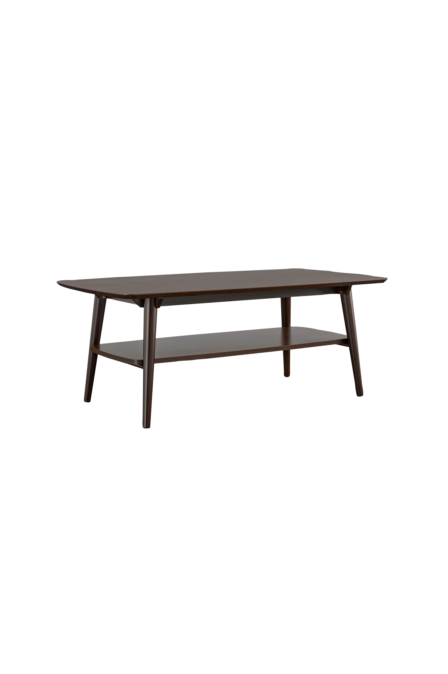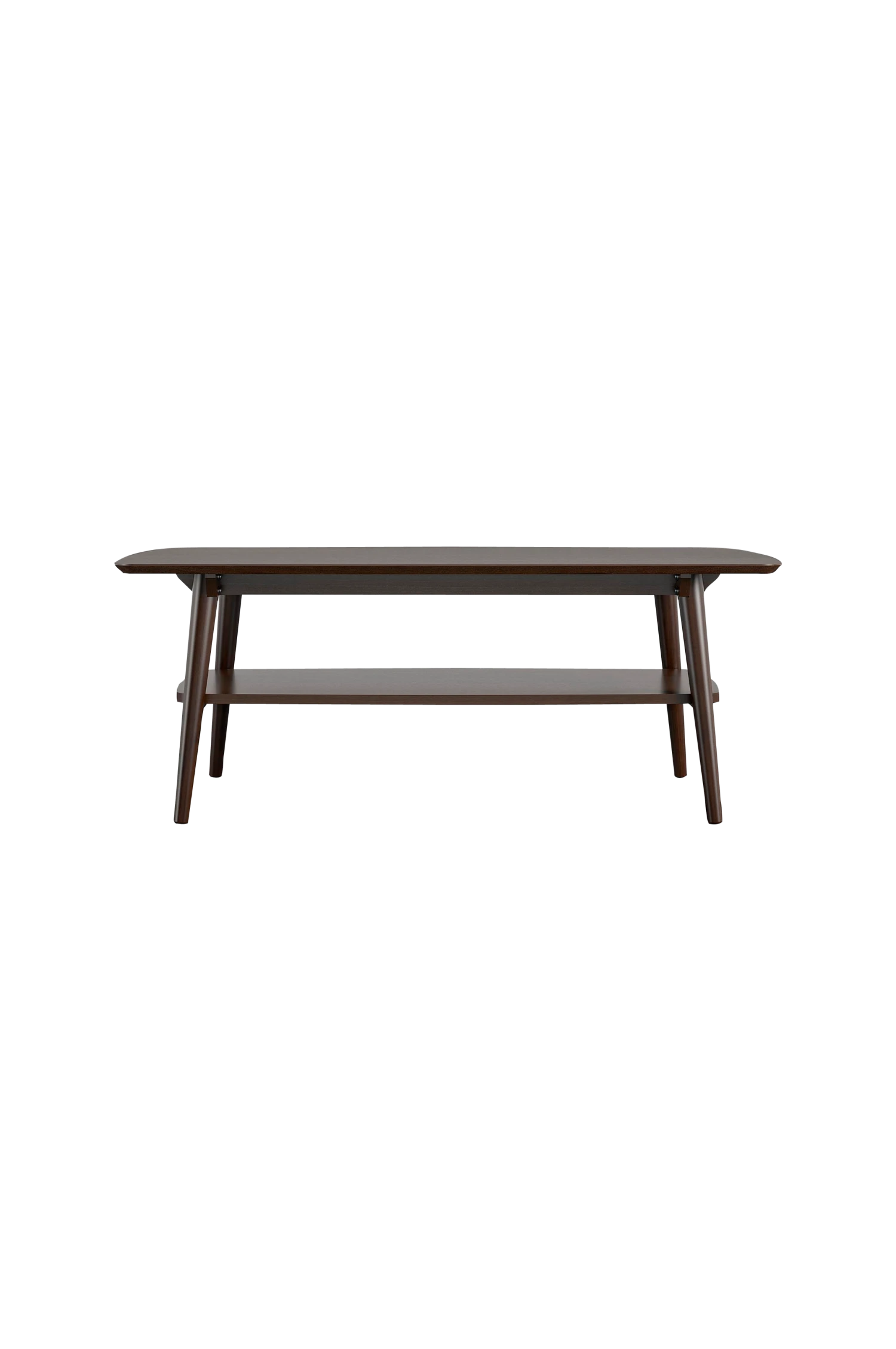 Komplettera vardagsrummet med soffbordet Brittany från Novogratz. Bordsskivans vackra träfaner med valnötsfinish ser ut och känns som riktigt trä och passar perfekt ihop med de vinklade träbenen. Den stora bordsskivan har en rundad kant och rymmer böcker och tidningar, glasunderlägg, snacks och elektronik. Hyllan under bordsskivan passar perfekt för böcker och tidningar. Soffbordet levereras i ett platt paket och kräver montering. Vi rekommenderar att två vuxna monterar produkten.