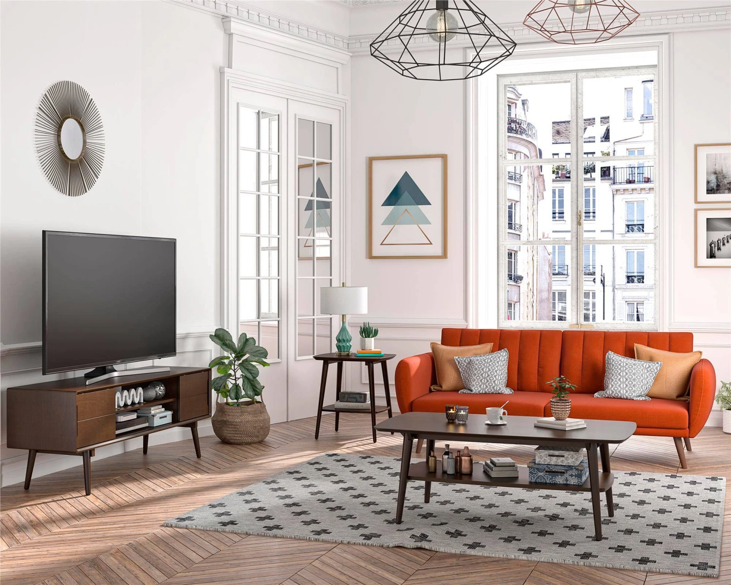 Komplettera vardagsrummet med soffbordet Brittany Novogratz. Bordsskivans vackra träfaner med valnötsfinish ser ut och känns som riktigt trä och passar perfekt ihop med de vinklade träbenen. Den stora bordsskivan har en rundad kant och rymmer böcker och tidningar, glasunderlägg, snacks och elektronik. Hyllan under bordsskivan passar perfekt för böcker och tidningar. Soffbordet levereras i ett platt paket och kräver montering. Vi rekommendera…