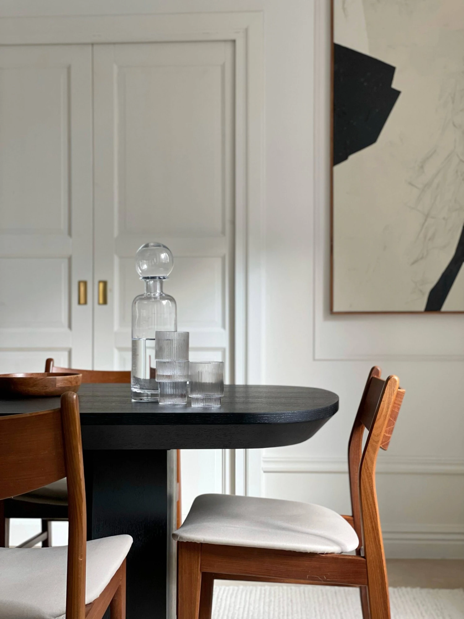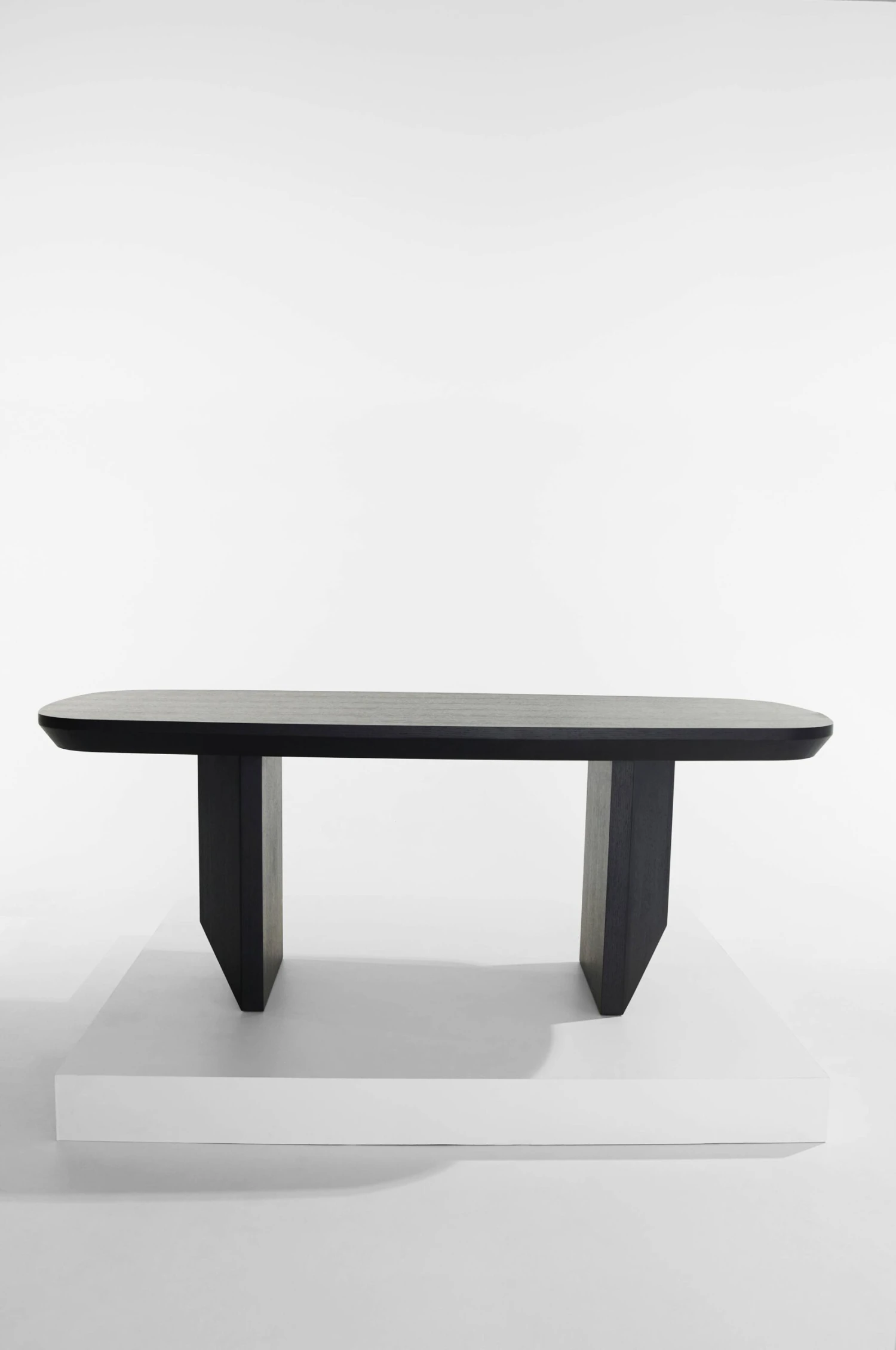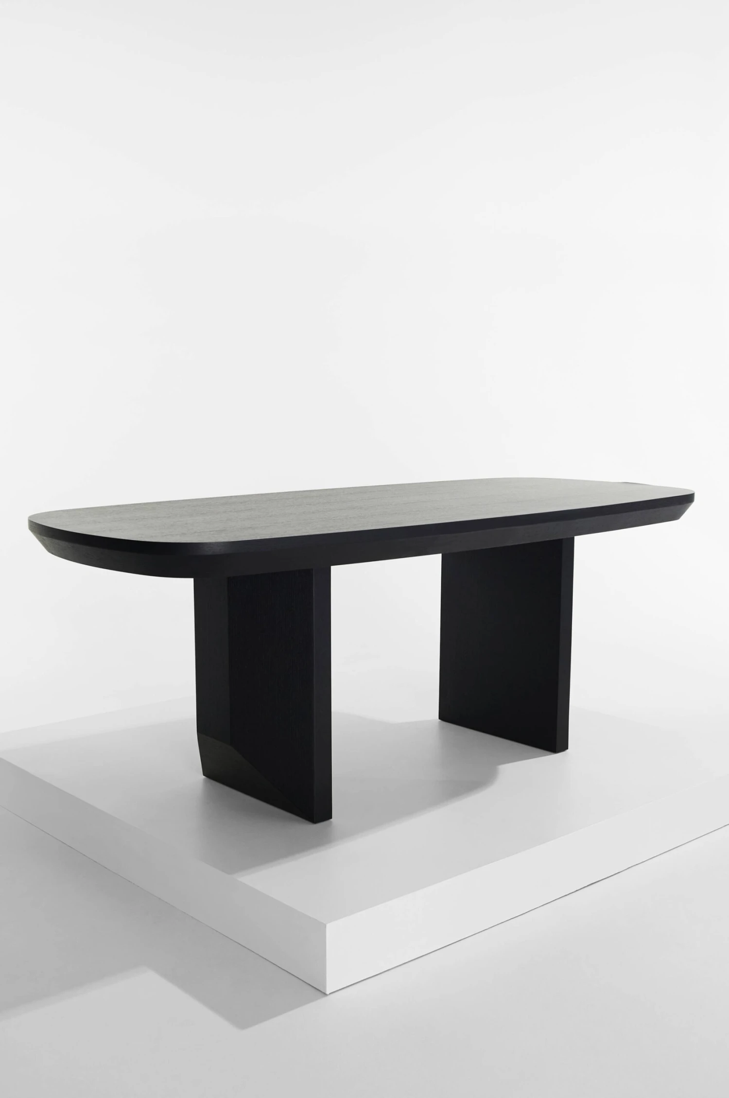 Corinne är ett rejält, praktiskt och oerhört snyggt matbord, som gjort för att samla många vänner runt. De väl placerade benen gör det enkel att sitta runt hela bordet. Den stora bordsskivan har en snygg, fasad sarg under och även benen, ett brett i vardera änden, matchar fasningen. Stommen är av MDF med elegant, svartmålad ekfaner. Materialet i bordet är märkt med FSC. Bordet kommer omonterat. Skruvar och monteringsanvisning för att skruva fast benen medföljer. Produkten innehåller trä som är avverkat från ett ansvarsfullt, kontrollerat och mer hållbart skogsbruk som tar hänsyn till människor och miljö. – MDF, ekfaner – 90×200 cm, höjd 72 cm – avstånd mellan ben 86 cm