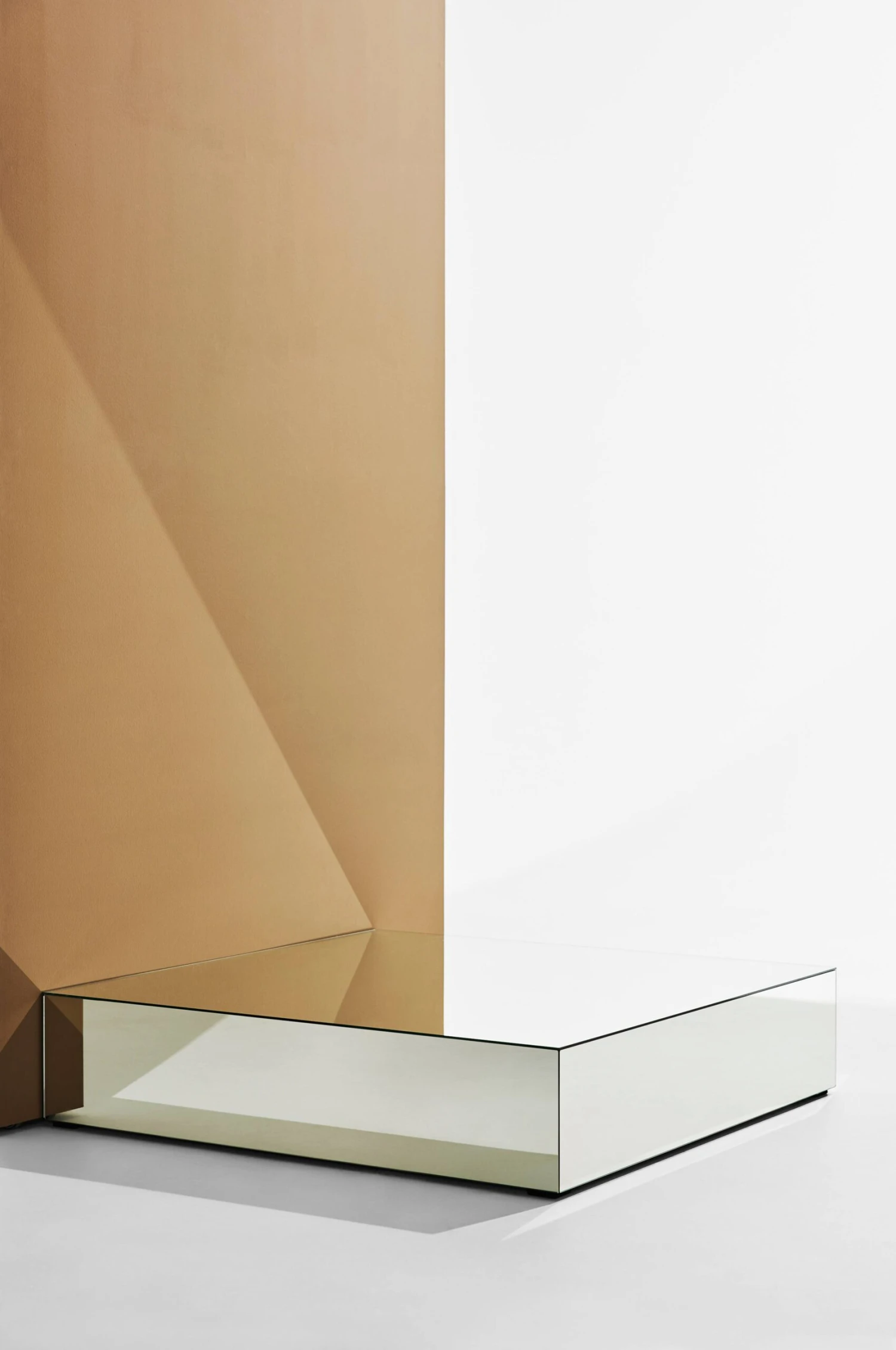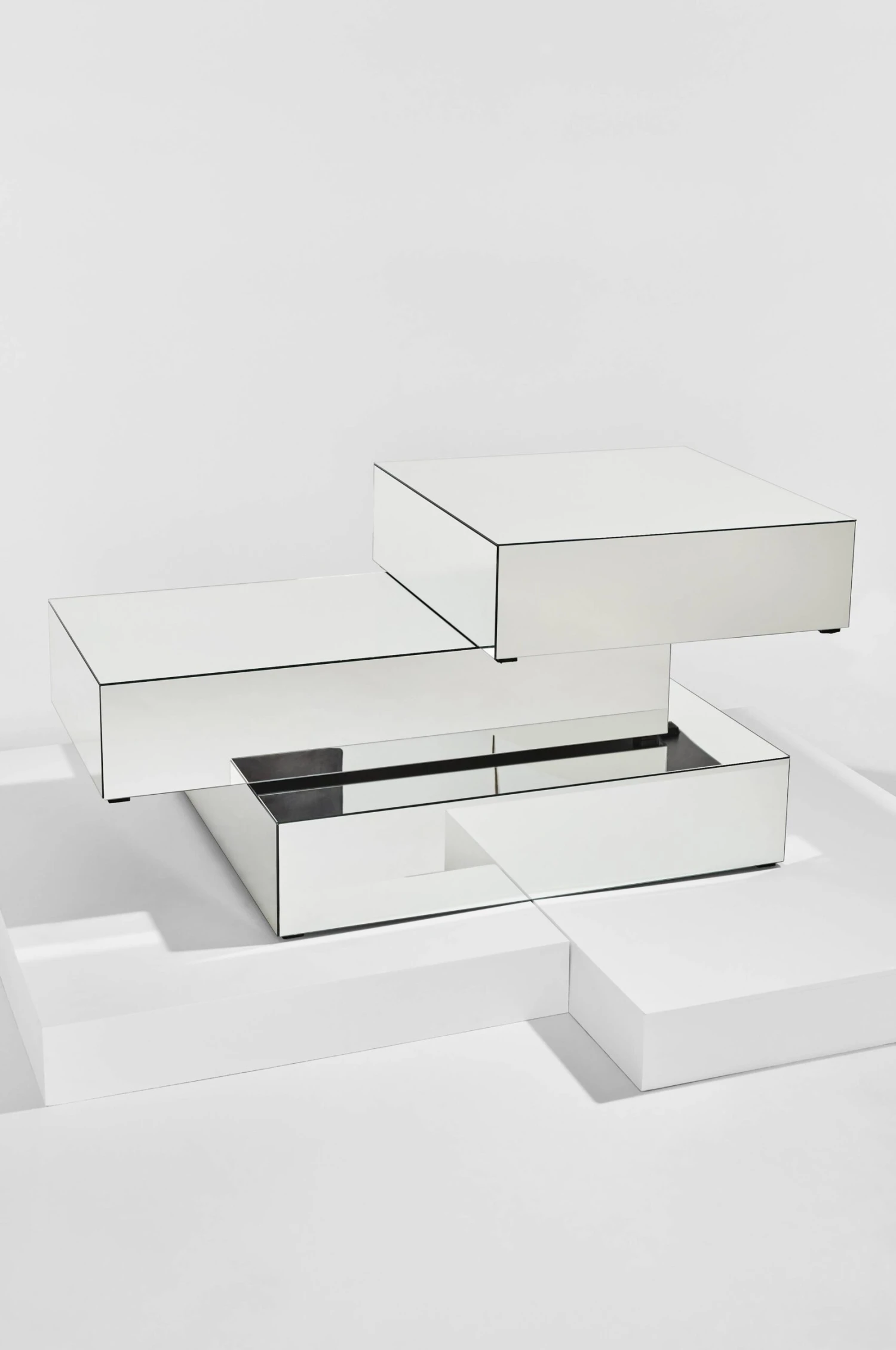 Ett bord som tar plats och blir rummets mittpunkt. Bordet har sidor och bordsskiva av spegelglas. Små dolda ben gör att bordet ser ut att sväva en aning. Stommen är av FSC-certifierad MDF som sedan täckts med spegelglas. Ponti är lite kaxigt, en mix av lika delar nyhet och retro.
