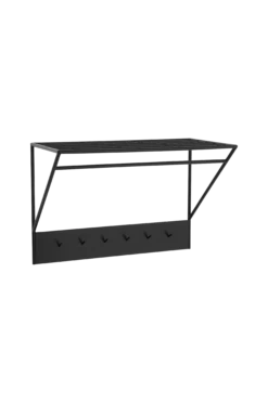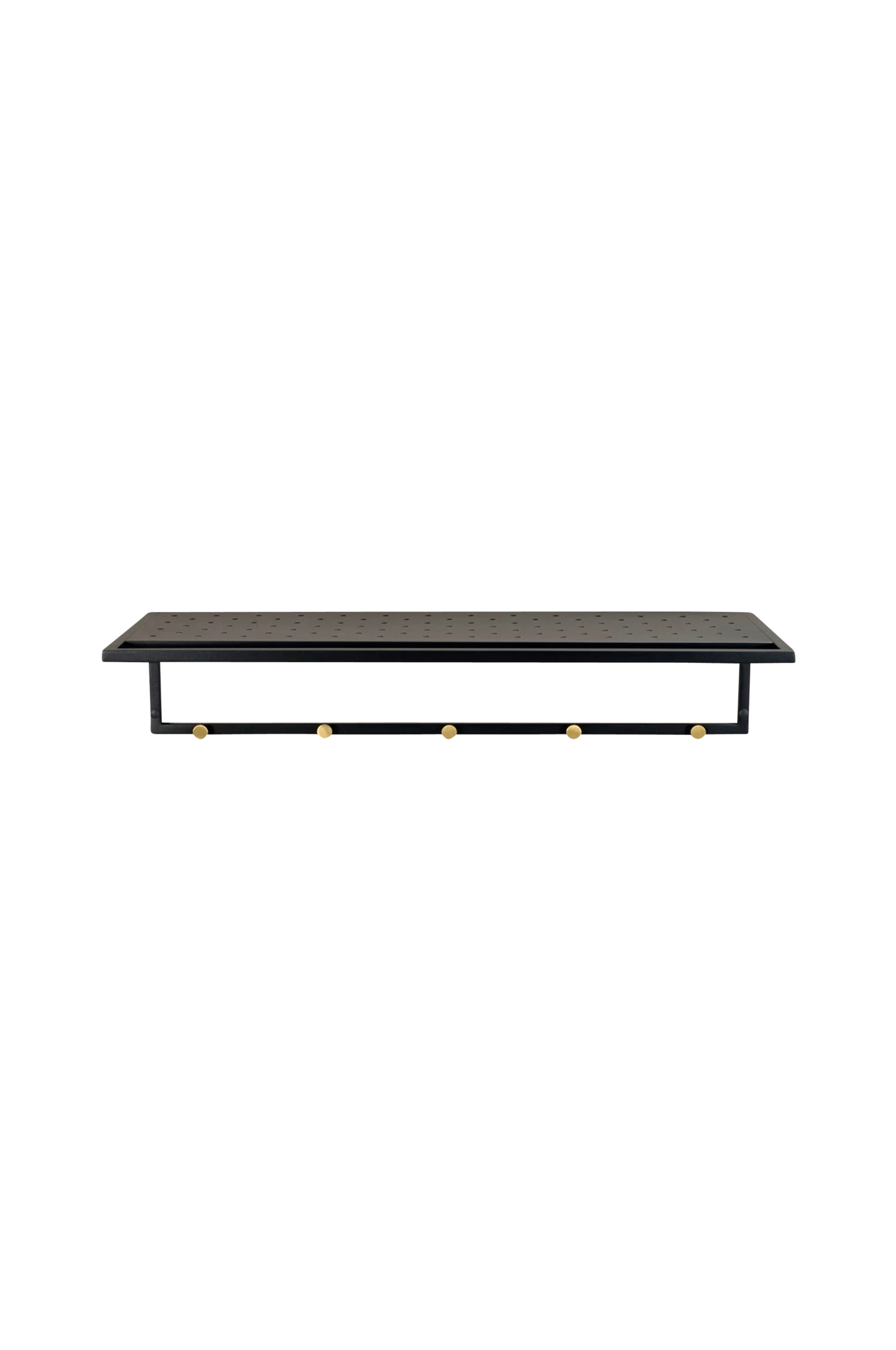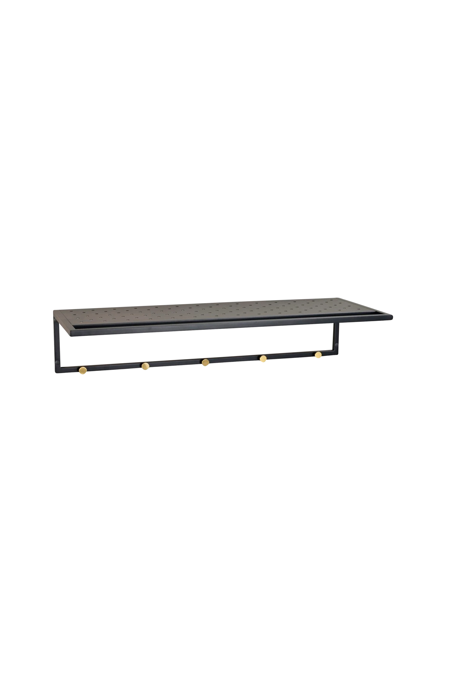 Jersey hatthylla 80 cm i svart metall. Jersey hallserie består av svart pulverlackad metall med sandstruktur och av metallknoppar i guldfärg. Hallserien är en modern serie som ger ett elegant intryck och lyfter vilket hem som helst. Bredd 80 cm, höjd 17 cm, djup 32 cm. Levereras omonterad.