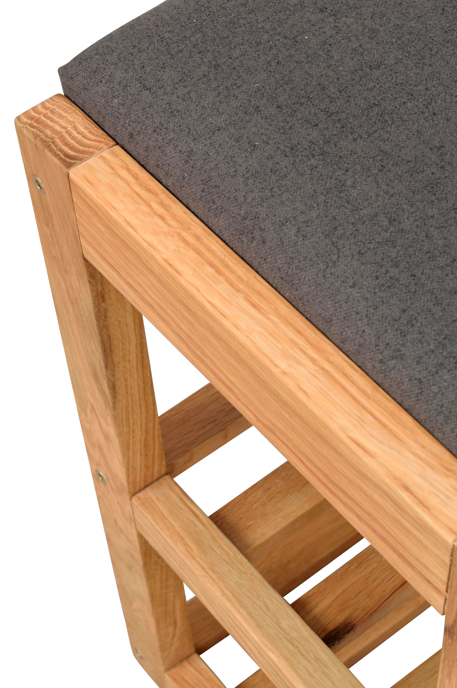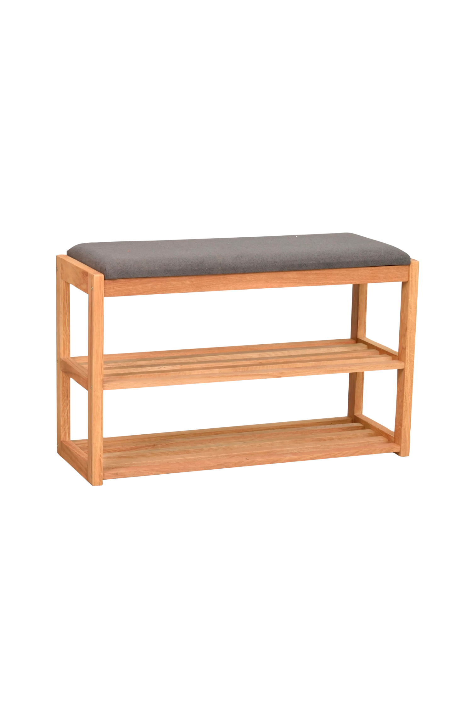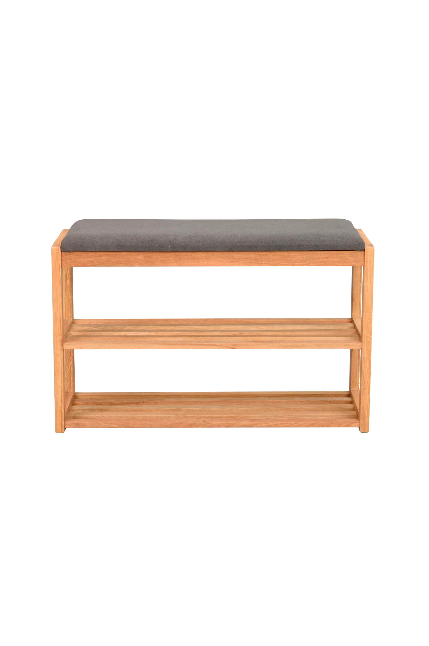 Confetti skoställ i massiv ek är en praktisk hallmöbel med sittbänk och skohyllor i ett. Skostället har två hyllor och en skön sittdyna med slitstarkt tyg – perfekt för hallen.