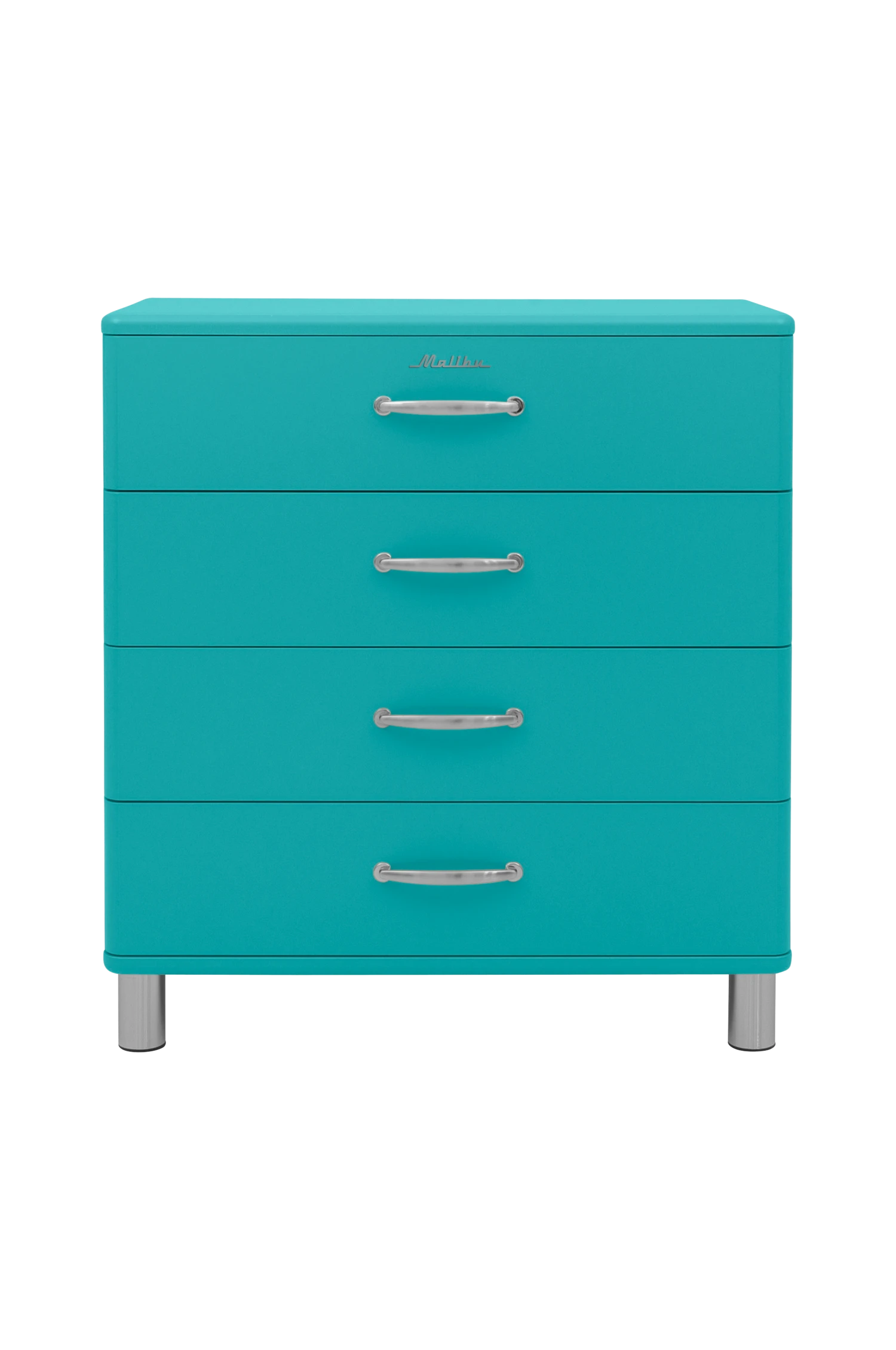 Rebellen. 50- och 60-talet andades frihetskänsla. Ungdomar bröt sig loss från det traditionella sociala normerna man ville inte leva efter den äldre generationens föreställningar eller följa gamla mönster. Istället uttryckte de sig genom musik, mode och bilar. Nya subkulturer växte fram Rock n Roll och surfing lät de unga njuta av sin frihet och uttrycka sig själva. Denna unga generation ville slå sig fria från samhället de föddes i, de ville vara annorlunda, de ville visa vilka de var. Tack vare dessa unga människor är Malibu annorlunda och uttrycker vem du är. Malibu är ung, rebellisk och färgstark! Malibu är inspirerad av stilen och tankarna från de unga på 50- och 60-talet. Rutger Andersson har skapat en färgstark retrodesign som förmedlar en känsla från tiden då frihet och självuttryckandet föddes. Sammanflätningen av modernitet och retrodesign gör möbeln tidlös och unik. Malibu är tillverkad i Sverige i lackad MDF & spånskiva, hantag och ben matt nickel. Malibu ger stora förvaringsmöjligheter.
