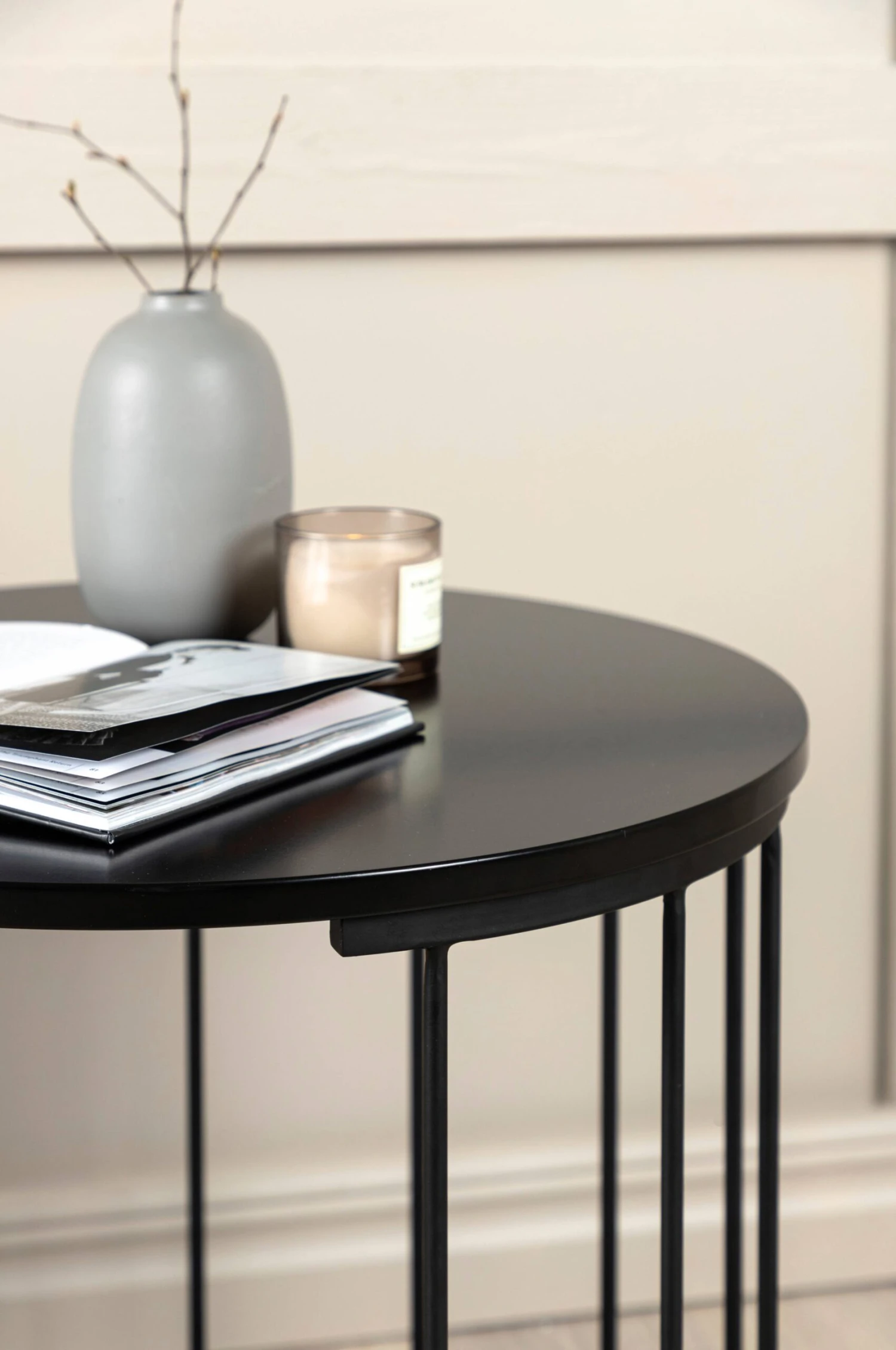 Ett designbord som imponerar med sina modemedvetna detaljer! Soffbordet serien Hobart tillhör Venture Home kollektionen och har en rund bordsskiva och botten i svart MDF med ben i galler-formation. Den genomgående svarta kulören och dekorativa designen är enkel att matcha med övrig inredning. Placera på en mysig matta framför soffan och njut av ett iögonfallande blickfång!