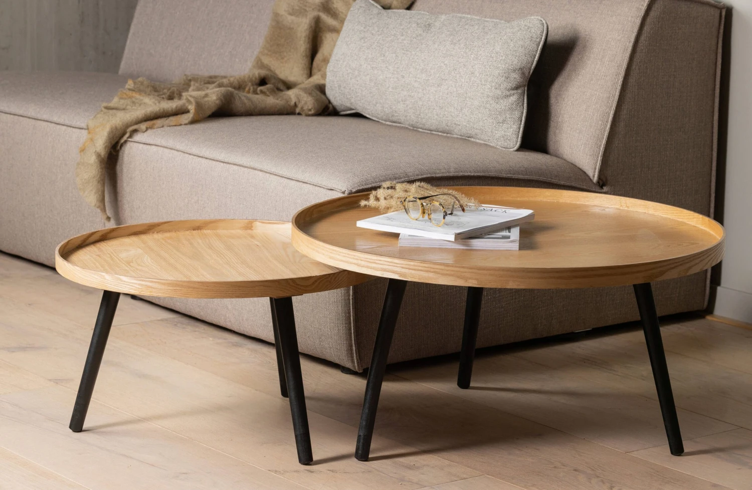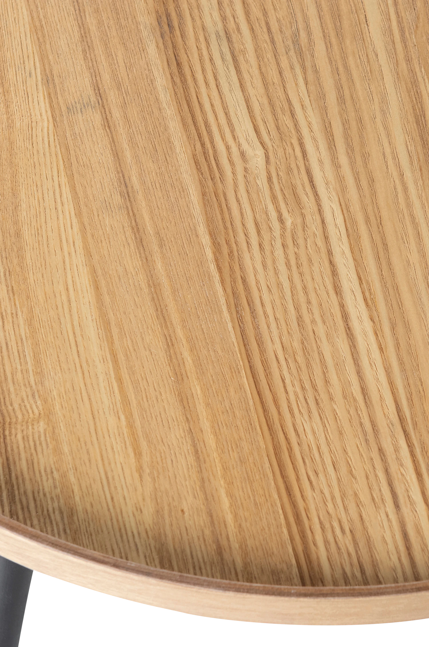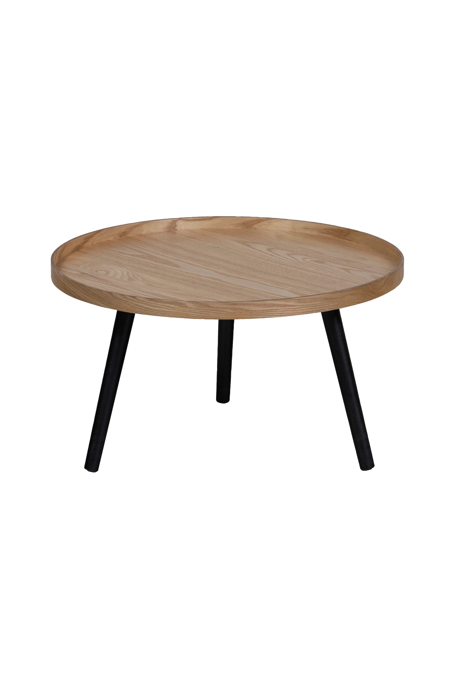 Mesa sidobord WOOOD (Øxh) 60×34 cm är tillverkat av trä. Bordsskivan med diameter 60 cm har en kant. Mesa sidobord har tre ben, vilket skapar en retrokänsla. Sidobordets höjd är 34 cm.