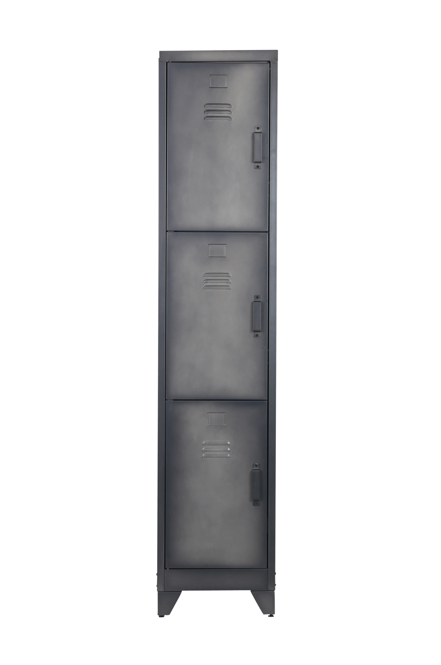 Cas skåp 3 dörrar (hxwxd) 180x38x45,5 cm från det holländska märket WOOOD är en tuff förvaring. Skåpet har tre låsdörrar, bakom var och en i de tre dörrarna finns hyllplan. Detta ger Cas skåp mycket lagringsutrymme! Skåpet är tillverkat i metall. Vill du göra en industriell modern skåpvägg? Placera flera Cas-skåp 3 dörrar bredvid varandra eller gör en kombination med Cas-skåpets 1 dörr (köpes separat). Skåpet levereras omonterat med tydliga monteringsanvisningar.